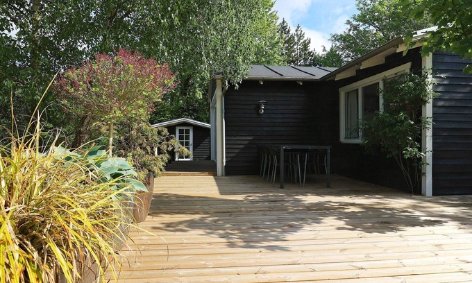 Layout: Annex: (double bed, children's bed) Kitchen(cooker(electric), coffee machine, microwave, dishwasher, fridge, freezer(60-99L), high chair), Living/bed room(TV(german television channels, danish TV channels (DR1 and TV2), norvegian TV channels , swedish TV channels), chromecast), bedroom(double bed), bedroom(double folding bed), bathroom(washbasin, shower, toilet, washing machine), heating(electric), terrace, garden furniture, sun loungers, air to air heatpump
