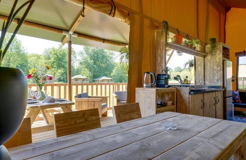 6-person safari tent with private bathroom, kitchen and hotel-quality beds | House in Zeewolde