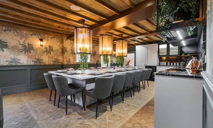 Supreme Escapes are delighted to present The Middleton Towers that sleeps 16 adults, overlooking the Irish Sea and is directly on the Bay of Morecambe. The Manor House is in a private estate, and yet tucked away in plain sight. Making full use of the space, the Middleton Towers offers extensive and quirky space to relax, a games room, a private full size indoor pool, sauna, massage spa, gym and of course its own private outdoor Jacuzzi! Have all your 16 guests stay in splendour with Supreme Escapes. The space: The Middleton Towers has 5 bedrooms and 3 bathrooms. The ground floor is one huge space, and now incorporates the latest in contemporary design. A huge TV, quirky games room, open plan kitchen and dining with every conceivable luxurious extra. On the ground floor there is a gorgeous 4 single bed nautical style bedroom with ensuite facilities perfect for disabled access or for the grandparents. You can relax for quiet time by the reading nook, but it doesn’t end there. On the upper floor we have 4 decadent bedrooms, each individually designed and themed. The design is lavish and unique, from contemporary and minimalist bedrooms and bathrooms the Manor and its spaces will wow you. Did we mention, the lounge and its original fireplace is the perfect cosy place to relax in, as well as the socialising and party hub of the Manor, especially thanks to the integrated full surround sound system in the entire house. Complementing the audacious interior is the outside space, consisting of boutique garden areas, Hot Tub, eating areas and outdoor kitchen, including masonry BBQ, outdoor stone pizza oven, fire pit, gazebo, along with secure gated access and 10 vehicle parking. The Towers are the most unreal and sensational place to take in the views of the Irish sea and the countryside around for a full 360 degrees breath-taking views. Dont forget the full size indoor heated swimming pool, with sauna, massage room, gym, all fully fitted with a surround sound system. For families, extended families or groups of friends, and all your party requirements, the Middleton Towers is the unbeatable beach gateway and being near the Lake District this is the destination to be at any time of the year. Guest access: Full access to the grounds and manor are given to our guests. Includes 5 bedrooms, 3 bathrooms and private parking outside for 10 cars. Stay in splendour with Supreme Escapes. Please note the swimming pool, sauna, gym, massage spa, is fully private and exclusive for your use only from 11.30am - 4pm everyday of the year. Other things to note: Please note the swimming pool, gym, sauna, massage room, is fully private and exclusive to your use from 11.30am - 4pm. We ask you please please respect the timing and keep the areas neat and tidy at all times and please please follow the pool rules of no food or drinks allowed in there.