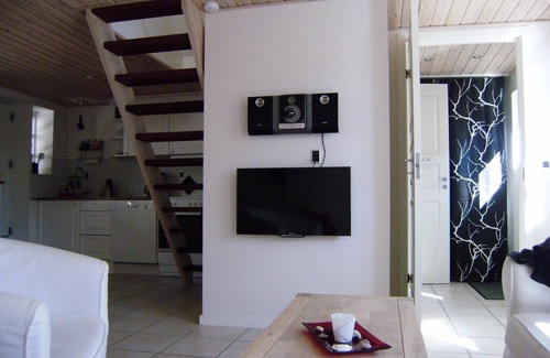 60 sq. metres lovely renovated city house situated on 70 sq. metres ground located in Nykøbing's old fishing town with paving stones on the street. This house is close to the harbour, restaurants, bathing beach and shopping street. It has spacious room on the first floor with 2 single beds. Double sofabed at the living room. It is simply and modernly designed with tiles at the ground floor and wooden floor on the 1st floor. Exit to nice partly roofed patio. Garden furniture and grill. A 'Non-Smoking' house. Cable TV. Free Wi-fi.
