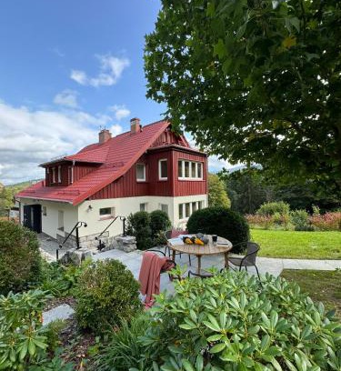 611 n.p.m. Offers accommodations in Jagniątków, 7.3 miles from Dinopark and 7.9 miles from Szklarska Poreba Bus Station. This property offers access to a balcony, free private parking, and free Wifi. The villa has an outdoor fireplace and a sauna. Leading onto a patio with garden views, the villa consists of 4 bedrooms. Offering a terrace with mountain views, this villa also has a cable flat-screen TV, a well-equipped kitchenette with a dishwasher, an oven, and a toaster, as well as 3 bathrooms with a bath and a hair dryer. This villa is allergy-free and non-smoking. Guests can make the most of the warm weather with the property's barbecue facilities. Guests at the villa will be able to enjoy activities in and around Jagniątków, like walking tours. Guests at 611 n.p.m. Can enjoy cycling and hiking nearby, or make the most of the garden. Death Turn is 8.2 miles from the accommodation, while Izerska Railway is 8.6 miles away. Copernicus Wrocław Airport is 72 miles from the property.