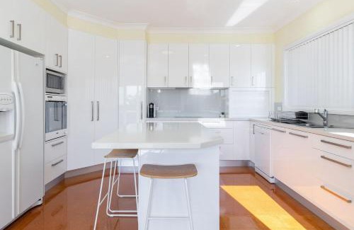 63 Burgess Road is located in Forster, just a few steps from Burgess Beach and 23 miles from Myall Lakes. This beachfront property offers access to free Wifi. Forster Marina is 2.7 miles from the vacation home. Providing a balcony with sea views, this vacation home also offers a TV, a well-equipped kitchen with a dishwasher, an oven, and a microwave, as well as 3 bathrooms with a shower and a hair dryer. The property has an outdoor dining area.