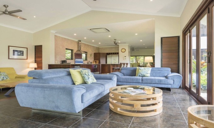 65 Mitre Street features spacious living areas, an open plan kitchen and outdoor entertainment area with BBQ overlooking the 5th fairway of the world class Palmer Sea Reef International golf course. Surrounded by tropical gardens this holiday home is perfectly positioned with louvre windows throughout to capture the prevailing tropical breezes. Adorned with all of the comforts of home, and a short stroll to the white sand of Four Mile Beach, 65 Mitre is the place to relax, unwind and recharge - you won't want to leave!