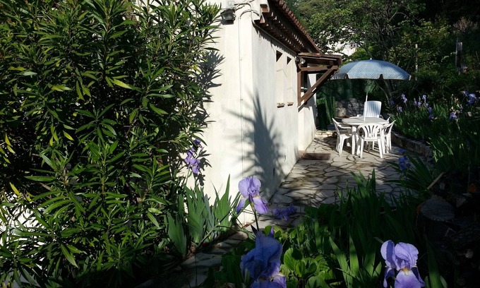All year round, 65m2 two-room apartment in villa, with separate entrance, 55m2 terrace, 200m2 garden, 5 people-parking.