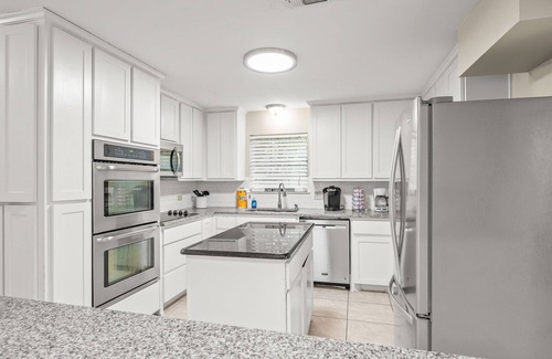 Lake Texoma is your new go-to destination for a great week out of town. This home offers a massive wall of windows that looks over the top of the trees in this lakeside community. The 1st floor is a popular place to mingle, offering a pool table and expansive living room. The Basement is where the fun happens with a ping pong table, air hockey table, giant jenga, giant connect 4, Video games and a pub table. Walk out to grill on the upper patio or walk out the basement to sit by the fire. Enjoy flat screen WiFi enabled TVS in the Man Cave in the Basement, the main floor living room, and in the Master Bedroom.