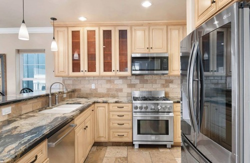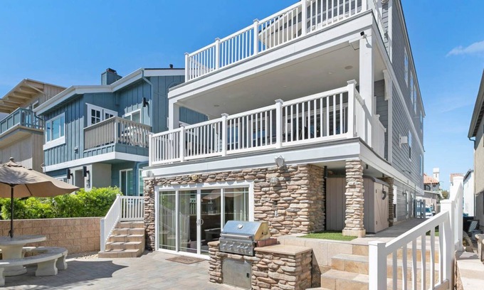 Located in South Mission Beach this luxury beach house was completed in August of 2007. I spared no expense with comfort and luxury as I sound-proofed the walls and provided all the updated furnishings. This is a 3 story condo w/ the top two floors providing a 4 brm/ 3 1/2 bath and the first floor unit providing a 2 bd/2 bth unit. Both have top rated kitchens including 3 air-fryers. There is a 2 car garage big enough for 2 Yukons. The floors are all travertine tile and counter tops are all granite. Spacious decks with BBQs and outdoor shower. Your family, no matter how big will be able to watch TV in the family rooms and enjoy dinners together as there is plenty of room for 14 people onside and 6-8 outside on the deck. Downstairs front yard has enough room for 16 people to sit and enjoy BBQ's together. Tables and chairs included if you desire.