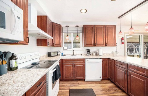 Spread out and settle into over 3,100 square feet of thoughtfully designed living space, perfect for family gatherings, group getaways, or a comfortable home base while exploring Colorado. Located in Wheat Ridge, just minutes from major highways, this 6-bedroom retreat blends modern comfort with playful touches, creating a space that’s as welcoming as it is functional.