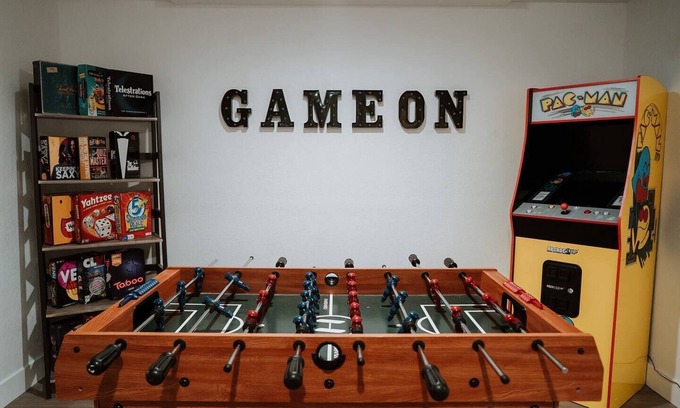 - Game room w/ 100" projector, foosball & arcade