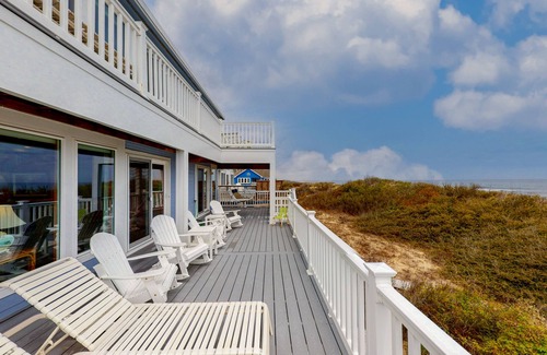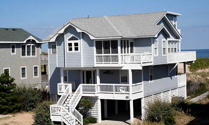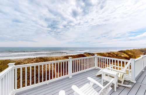 Enjoy the magnificent 180-degree ocean views offered from this wonderful well-equipped oceanfront home. Watch the Ocean Sunrise while relaxing on the porch swing with the morning's first cup of coffee. Plan your day's activities, catch up on the latest family news or count the evening stars with the kids! It's just a short walk to the community pool and tennis courts and a short drive to the Currituck Club golf course, shopping and restaurants. All king and queen bedrooms are oceanfront and open to the decks.