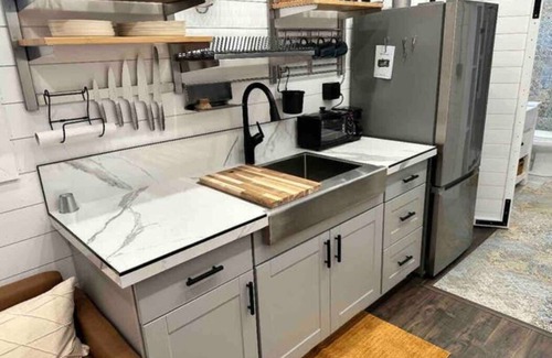 -Kitchenette Equipped with Toaster Oven, Microwave, Coffee Pot, French Press, Refrigerator & Freezer, Filtered Water, Ice, Dishware, Glassware