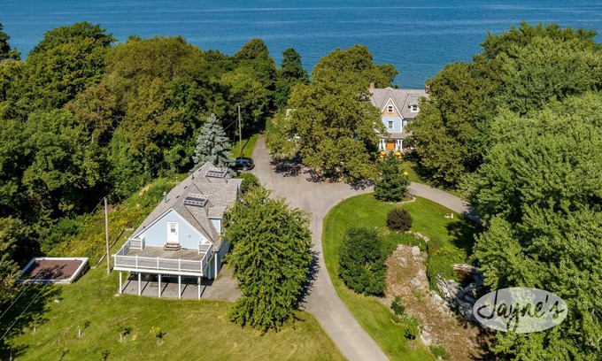 MOKSHA - It can only be described as "heaven on earth" as you drive up the long winding driveway through this beautiful 5 acre property with it's unique, majestic trees, orchard, guest house and stately reproduction main residence. The large wraparound porch hosts multiple seating and dining areas and massive high end bbq. Walk down the path from the house to the water's edge for a beautiful view of Lake Ontario and dip your feet into the shallow, sandy entry. If lake dipping is not for everyone, immerse yourself in the new inground pool or relax in the hot tub while you listen to the music piped through the trees while star gazing. A beautiful brand new gazebo by the pool can be host for many outdoor meals or kick off your shoes and dance the night away. This stunning property is as peaceful as can be and set up for a zen experience, yet it is only minutes to any activity your heart desires.