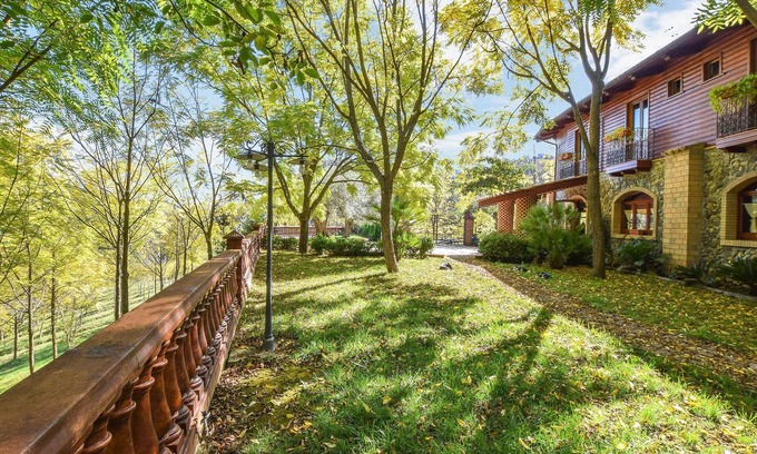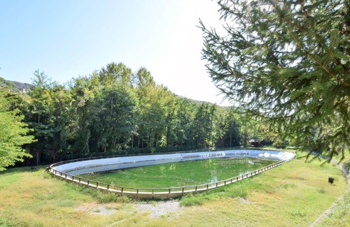 This independent vacation home is located on a 100 hectare property surrounded by woods, chestnut and walnut trees on the eastern slope of the coast of the Calabrian Plateau in the municipality of Rota Greca in the province of Cosenza. Thanks to its location in the heart of the estate, this house offers a true oasis of tranquility with the charm of an old country house, the right place for a stay in harmony with nature. The accommodation is spread over two levels: On the first floor there is a large dining room with fireplace, recreation area and kitchen. On the second floor there are seven bedrooms, all with private bathroom, TV and air conditioning (hot / cold) for a total of 16 sleeping places. Here you can enjoy quiet days of hiking in the surrounding private forest, a true natural paradise flanked by two streams, one of which forms a pond a few meters from the house and where trout sport fishing is available on request. Along the streams you can eat in picnic areas with barbecue. A bocce court is also at your disposal. On the property there is a fenced nature reserve with wild boars. This is a strategic base for visiting Calabria: A few kilometers away is the beautiful Cosenza with its wonderful historical center. In less than an hour by car you can reach the seaside resorts of Tyrrhenian Sea, Sila, the coasts of the Ionian Sea and the fantastic Pollino Mountains. Discover the characteristic villages of the region with countless architectural and scenic treasures. Ideal for groups of families and friends, a true paradise also for your four-legged friends. Cook and cleaning staff on request and for a fee.