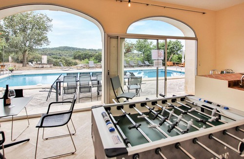 In the middle of the Luberon, at the foot of the famous mountain village of Bonnieux, you will find this wonderful Provençal chateau in a traditional vineyard. Its very spacious interior is captivating with a subtle blend of contemporary and vintage styles. Its large, light-filled rooms benefit from high ceilings and a feel-good atmosphere with high-quality furniture. The bedrooms feature cozy beds. A recreation room with a bar is also at your disposal.