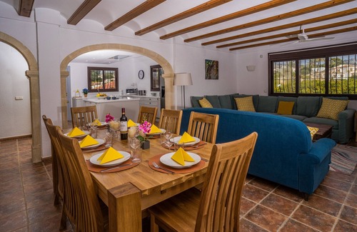 Villa Roja is a generously spacious 7-bedroom haven, perfect for those seeking a luxurious escape where they can truly unwind. Nestled on the fringes of the historic 'Javea Old Town,' this villa caters to a diverse range of guests, making it an ideal retreat for large families and mature groups. Tucked away on a peaceful residential street, it offers a serene atmosphere for those yearning for a stress-free holiday, yet it's conveniently close to the enchanting 'Spanish Pueblo' of Javea for exploration after a leisurely lunch.The villa's expansive terrace features a 10m x 5m private pool, set against the stunning backdrop of the majestic Montgo mountain. It's a sunworshipper’s paradise, basking in sunlight for up to 10 hours a day, an ideal spot to luxuriate in those golden rays. When it's time to dine, you won't need to venture far from your sunbed, thanks to the villa's ample, covered BBQ area complete with a dining table. Utilize the traditional charcoal BBQ to savour local delicacies while conveniently preparing the rest of your lazy lunch in the fully equipped downstairs kitchenette, designed for delightful alfresco dining.Should you desire a change of scenery, the upstairs covered terrace serves as the perfect 'Chill out Area,' whether for reading your favourite book or engaging in a relaxed conversation over cocktails while the kids frolic in the pool. Here, everyone can savour their own private space without feeling crowded. The villa boasts 7 well-appointed bedrooms, including 2 en-suites, all adorned to the highest standards. With two separate TV lounges, guests will find themselves wanting for nothing in this beautifully equipped villa. It truly has something to offer everyone, promising a blend of peace, serenity, and ample room for large families and mature groups, all just a 5 minute walk into Javea Old Town or a 10 minute drive into the heart of Javea, renowned for its 'Blue Flag Beaches,' charming bars, and delectable restaurants.As a gesture of our hospitality, all our guests receive a 'Complimentary Welcome Pack' to cater to your basic needs on your first day. We also provide 'Beach Towels' for your convenience during your stay, allowing you to save precious luggage space for additional attire. Plus, we offer 'Complimentary High-Speed Internet Wi-Fi' to ensure you're always connected during your visit. Our aim is to ensure you keep returning year after year, enjoying the pleasures of Villa Roja.To help keep a relaxed and respectful atmosphere for all our guests and neighbours, we’re not able to accept single-sex groups or any group under the age of 25. We really appreciate your understanding and look forward to welcoming you!