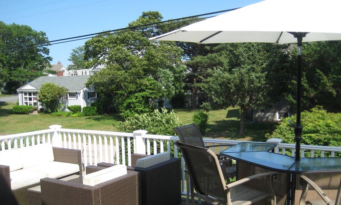 House is located 7 houses from the beach. Kitchen has granite counters, top line appliance, trash compactor, Central air and central vac and many fans. There is one full bathroom with washer and dryer and also a outside shower for after beach time. There are 3 bedrooms, first has a full bunk bed with trundle , second has Queen bed , third has a Adjustable Queen bed with Wall mounted TV and all have high end mattresses. Kitchen has granite counters with bar set up, stainless steel appliances, gas stove, filtered water and ice maker and dishwasher. Off kitchen is a 14 by 20 family room with 11 foot ceilings and a dinning area for 6. Head to a 14 by 20 deck that has patio furniture, dining for 6 with a additional 3 seat bar area and a New stainless steel grill. Popponessett is 8 miles to Falmouth and 11 miles to Hyannis. Located 5 miles to Mashpee Commons. Golf and public boat launches close by. Easy trips to the Islands. Make this a vacation of memories. We are looking to rent to single families.