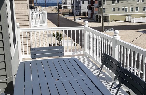 Reversed Living 3 Bedroom 2 1/2 Bath house, 7 houses from the Ocean and 7 houses from the Marina. Top Floor has open concept Kitchen, dining room and living room with a deck off the living room and a deck off the kitchen with ocean view. Kitchen newly updated. Washer Dryer and 1/2 Bath upstairs.