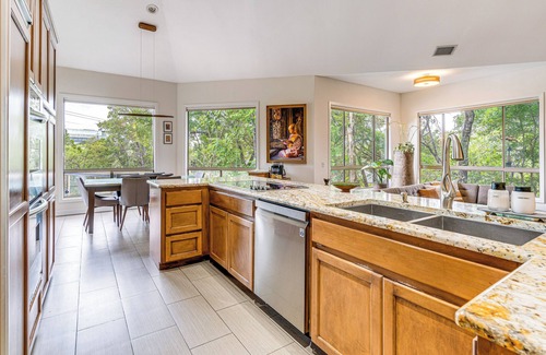 Whether you’re in town for a festival, catching a Longhorns game, or simply looking to explore iconic city sights, this Austin vacation rental has everything needed for a truly memorable experience! Check out downtown dining and nightlife or take the provided kayaks out for a spin on Lady Bird Lake. Later, head back to this peaceful 5-bedroom, 3.5-bath house to end the day with a dip in the pool!