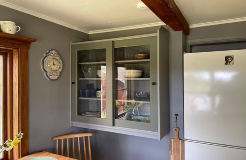 The dream of a cottage by the lake awaits you here in the heart of Sörmland, in Solvik. The cottage, which has been renovated while preserving its original charm, is beautifully situated on elevated ground with a lovely view overlooking Lake Trynen, which stretches southward and offers wonderful places to explore. The entrance door opens into a hallway with space for coats and shoes, leading into a large living room with a cozy open fireplace, a snug sofa corner that transforms into a comfortable bed for two at night, and a dining area that seats many. There is a sleeping alcove with a custom-built bunk bed. The kitchen is charming and fresh, equipped with a fridge and freezer, a small stove with two burners and an oven, and a small dining area. Cooking and washing up become a joy with the view over the lake. On the lake side of the cottage, there is an exit to the outdoor patio, which naturally becomes the perfect spot for meals and relaxation. In the guest house, you'll find the cottage’s toilet – an incinerating toilet – as well as a sink and shower. The guest house accommodates three people with a sofa bed and a single bed. Out by the traditional outhouse, which is freely available for use, you'll also find the cottage’s firewood storage. The area around Solvik offers plenty during the summer – from flea markets and a glassworks studio to forest hikes and walking trails. Put on your bathrobe and start your day with a dip in the lake. A warm welcome!