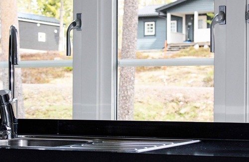Layout: Kitchen(cooker(electric), hood, coffee machine, oven, microwave, dishwasher, fridge-freezer), Living/bed room(TV(swedish TV channels), fireplace, radio, chromecast), bedroom(double bed), bedroom(2x bunk bed), bedroom(single bed, 2x bunk bed), bathroom(washbasin, shower, toilet, washing machine), terrace, parking, play equipment, geothermal energy, air to air heatpump