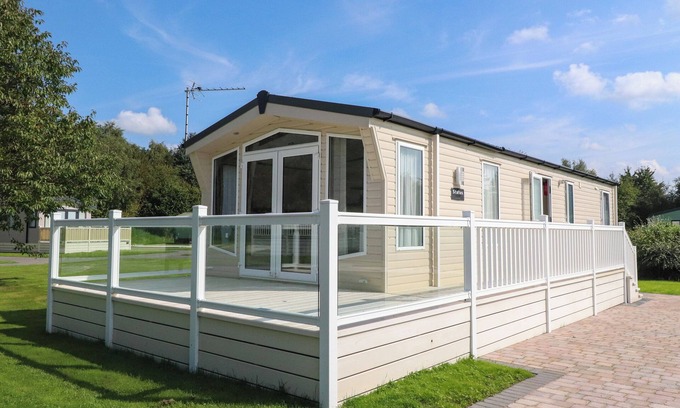 Amenities: Central heating. Electric oven, gas hob, microwave, fridge/freezer, dishwasher. Smart TV, WiFi, selection of books. Fuel and power inc. in rent. Bed linen and towels inc. in rent. Off-road parking for 2 cars. Enclosed wraparound decking with furniture. One well behaved dog welcome. No smoking. Shop and pub 0.9 miles. Note: There are several steps up to the property. Note: Bar and gym on-site for member use only