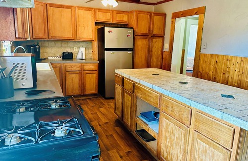 🍳 Kitchenette with stove, stovetop, microwave, large refrigerator/freezer, toaster, Keurig, kitchen essentials and cookware