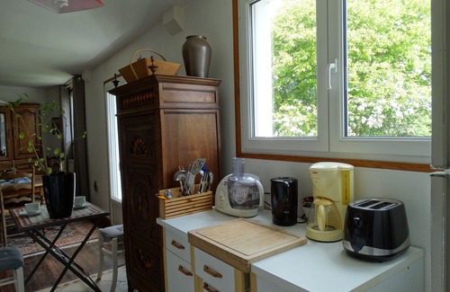 Spacious entrance with storage. Living room with 2 sofas + a BZ convertible (2 places). Dining room round table extending 6 chairs. Kitchen oven elec-tradi ceramic-hob 4 burners microwave freezer dishwasher fridge kettle coffee maker toaster food processor many tableware and cutlery utensils. Large bed 160x200, beautiful bedding and wardrobe. Bedroom with 2 90x190 beds. Bathroom. Separate WC. The floors are tiled for the water rooms and easy-to-live oiled floor for all the other rooms. Chair bed and bath for children. Storage spaces in all rooms. Basic provisions for cooking. wifi included. Various games.