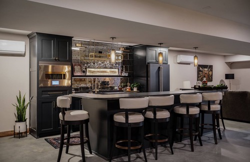 Every detail through the spacious seven bedroom residence has been thoughtfully considered to embrace guests in the ambiance of the past while offering the comfort of state-of-the-art features like heated floors, steam shower, chef’s kitchen and more. The speakeasy style lounge on the lower level offers an exclusive and charming retreat evoking the spirit of a bygone era.