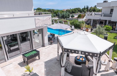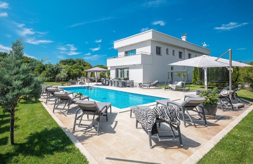 Welcome to this modern and luxurious villa that provides the ideal setting for an unforgettable vacation. Whether you are traveling with a large family or a group of friends, you will want for nothing in this vacation home. The spacious rooms with elegant interiors will allow you to spend a wonderful time together, but those who want to retreat and enjoy some privacy will also find the opportunity to do so in this spacious property.