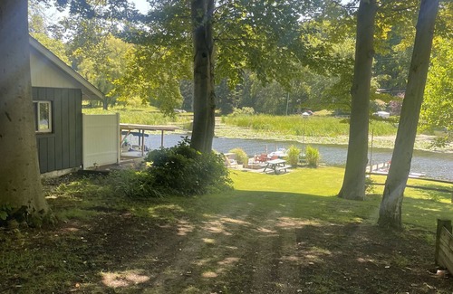 Relax on your brick patio or go fishing off your dock. Bring your own boat and take advantage of the included dock. Or rent one of our 5 pontoons. Enjoy swimming off the sand dunes / sand bar like locals do. The resort has sandy play area for endless hours of fun for the kids. We supply canoe, kayak, paddle boat , teather ball shuffle board, etc. Enjoy our fire pit complete with supplied fire wood.