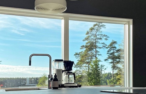 The latest in modern and comfortable accommodation mixed with the best of Sweden's nature, that's exactly what you get with this accommodation. This amazing house has large windows throughout the house to give you the most of this incredibly beautiful view. Who doesn't want to wake up with a view of the lake? The house's open spaces are well thought out and furnished to make the best use of inside and outside. Perfect for socializing, with an open kitchen where you can cook with a fantastic view. At the same time, the rest of the party can relax in the armchairs in front of the fireplace or enjoy the view of the lake. The house has a large terrace with a slide and lots of space to be outside, where you can enjoy a breakfast with a view of the beautiful beach and pier. Use the house's sauna before taking a dip in the lake from the jetty, or after a day on the ski slope, and enjoy the tranquility with the forest and the lake as your neighbour. The house works just as well for friends or couples traveling together as for families. For even larger travel groups, cabin 08285 is the closest to rent, approx. 30m away. The house has its own beach and you share a jetty with cottage 08285. The house has four spacious bedrooms. Two with double beds, one of which faces the lake with a large window and a view of the lake. Both double rooms have their own exit to the balcony via a balcony door. One with two single beds and one with a family bunk bed, 120+90. Large open kitchen with lounge area and dining area as well as another living area, for example if adults and children want to do different things after the meal, there is plenty of room for all wishes here. The house has modern furnished bathrooms, one with shower and sauna, one with toilet only. You have everything you need for a fantastic holiday here in the house and its beautiful surroundings, but should you still want to get out, there is plenty to do nearby. Only about 600 meters away is Påarp's farm, which has a restaurant, café, canoe rental and football golf. You only have 55km to High Chaparral, or 110km to Liseberg. If you like shopping, it's a little over 40km to Gekås in Ullared. If you want more physical activities in both summer and winter, Isaberg Mountain Resort is 46 km away. Enjoy idyllic Swedish nature at its best from a magical location in this high-class villa that has everything you could wish for! Warm welcome! You have everything you need for a fantastic holiday here in the house and its beautiful local area, but should you still want to get out, there is plenty to do nearby. Just about 600 meters away is Påarp's farm which has a restaurant, café, canoe rental and football golf. You only have 55km to High Chaparral, or 110km to Liseberg, or if you like shopping it is a little over 40km to Gekås in Ullared. Enjoy idyllic Swedish nature when it is at its best from a magical place in this high-class villa that has everything you could want! Warm welcome!