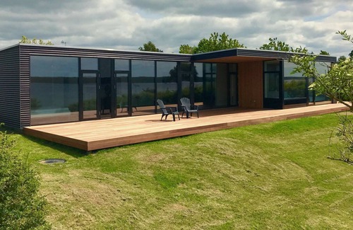 A rare architectural cottage with panoramic views of Roskilde Fjord. Both large and small children will love the activity room with both table tennis and darts. Here on the child-friendly coast you can holiday in a modern and very complete quality house, where only the best materials & # 8211; from nano-treated kitchen, solid wood floors to designer bathtubs. Nothing in the house is left to chance. Thus, the room division is perfect for two families or couples of friends who want to vacation together. The house has two separate sections, each with a double room, a children's room and a bathroom, and with a very spacious kitchen-dining room in the middle. The extra bed in one of the rooms is 170 cm long. Large panoramic windows on the entire water side let the light in, and the high location provides a completely unobstructed view of the fjord towards the Hornsherred peninsula. The terrace follows the water side and invites to cozy barbecue evenings on a charcoal grill. There are also opportunities for activities, including table tennis - however, you must bring your own table tennis bat if extra good bats are desired. With the binoculars you can follow the migratory birds resting in the area in spring and autumn, and in the peaceful holiday home area there is no artificial light that disturbs the starry sky. The house is presented in the magazine BO BEDRE from July 2019. Not for rent to youth groups.