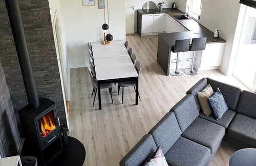 This architect-designed and well-appointed cottage with whirlpool and sauna is located in a very attractive area on the island of Als close to the Danish / German border. There are activity rooms with table tennis, billiards and air hockey, where you can have fun with good competitions. Open kitchen integrated with large living room with i.a. internet and cable TV. In the bathroom you will find a whirlpool and sauna, where you can relax and get renewed energy and well-being. With its 10 beds, the house is ideal for two families. Outdoors there is a slide for the little ones as well as a large lawn with football goals. On the large terrace the sun can be enjoyed all day. The house is located on secluded grounds with a short distance to nice beach, water and nature. Close to one of Denmark's best bathing and surfing beaches. There is also a restaurant, grocery store and award-winning bakery in the area.