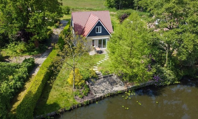 This house has a very spacious garden with a terrace on the water and a storage room that is accessible from outside, equipped with a washing machine and dryer.