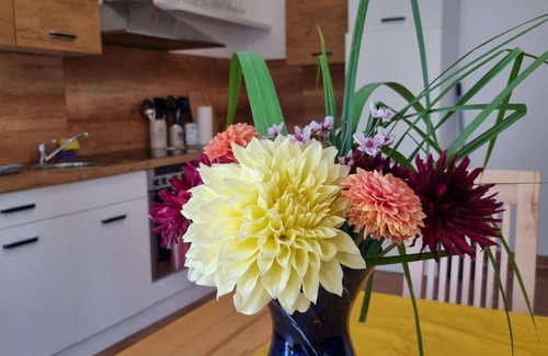 Then this holiday home is right for you. The flat is for 6 people, fully equipped, WiFi in the entire area, landscaped courtyard. Our chickens and ducks live there peacefully. They are very trusting and children are allowed to pet and feed them.