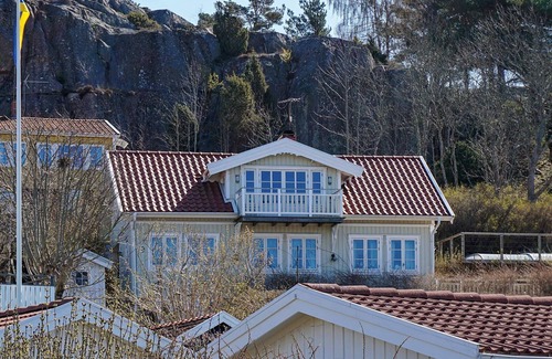 Welcome to a family-friendly charming accommodation with sea views and a lovely sunny location in the small picturesque and well-preserved fishing and stonemason community of Sannäs. Here it is short walking distance to the sea, good swimming, golf, lovely nature with nice nature trails and vantage points with views in addition to the surrounding archipelago. There is also a municipal guest jetty for those who want to come here by sea. The cottage located in the older charming part of the community has several terrace areas and terrace areas in both sun and shaded locations, here you can really enjoy peace and quiet, find rest and inner harmony or to have a good bite to eat and a moment of conversation after the day's baths, pleasures or excursions. Through a granite stone staircase you reach the entrance of the cottage at the back, already here you are struck by the cottage's various stonework, walls and terraces. On the inside you will be greeted by a welcoming hall from where it goes upstairs to the second floor of the cottage. The first floor consists of kitchen with hob, oven, fridge/freezer, microwave and dishwasher, living room with large dining room furniture and TV corner with cozy sofa group, the living room is also adorned by a tiled stove, bedroom with two single beds, bathroom with shower and washing machine. The cottage has several nice double doors with glass both indoors and out to the patio area and balcony as well as many large windows, all so that you can constantly enjoy the nice sea views. The second floor has 4 bedrooms, one of which is a walk-through room, in three of the rooms there are double beds and in one bedroom there are two single beds, toilet and a living room with TV, comfortable sofas and armchairs, here you open the double doors out onto the balcony and let the view and the smell of the sea unite while relaxing with a good book. From the kitchen you reach the different patio areas and sun deck where you can continue to enjoy the sun and sea views, here you will also find an outdoor shower. There are a number of different furniture to choose from, ranging from sun loungers to seating areas for cozy barbecues where you discuss the day's adventures or plan for new ones. The cottage has a fiber connection. It is not far from several of northern Bohuslän's picturesque fishing villages where in addition to experiencing the narrow alleys, summer shops, restaurants you can also rent boat scharter or why not a kayak to experience the nice archipelago outside. Several nature reserves with fantastic nature can be found in the area such as. Tjurpannan and also Sweden's first marine national park Kosterhavet National Park are well worth a visit. For those interested in golf there are several golf courses to choose from, the nearest Mjölkeröds GK is within walking distance. Welcome to enjoy the best of Bohuslän!