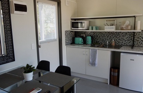 This is a brand new 2 bedroom self contained luxury cabin complete with kitchette, airconditioning, private bathroom, private patio courtyard garden etc.