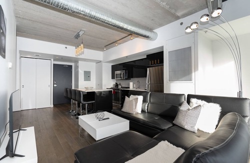 Welcome to this chic 2-bedroom urban retreat in downtown Winnipeg accommodates up to 5 guests. Perfect for couples or small families, the stylish apartment features modern amenities, a fully equipped kitchen, and a spacious living room for a stylish stay in the heart of the city.