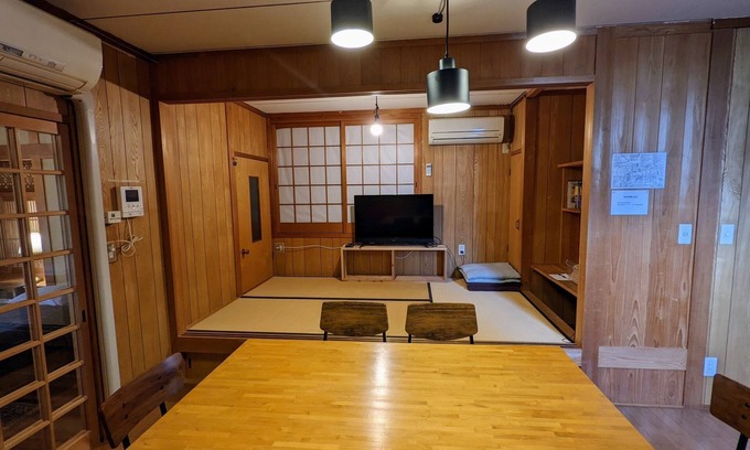 Bath x 1 Toilet x 1 3seat sofa x 1 low table 4seat table chair x 4 plate glass pot IH cooking heater A set of cooking utensils such as frying pans coffee mill dripper instant coffee tea 42inch TV Amazon fire stick TV only free ones are available / A 100yearold twostory old private house has been renovated It is a private house of about 120 square meters The atmosphere of the old townhouse has been retained but the water area has been renovated in a modern style and there is also a bath with a large bathtub There is also floor heating on the first floor so you can stay warm even in winter