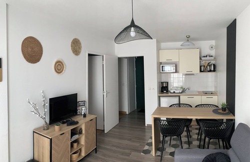 Nestled in Equemauville, this 1-bedroom, 1-bathroom apartment brings it all within your reach. Fans of nature and the outdoors will love being 9 minutes by car from Butin Beach and 5 minutes from Mont Joli. You'll easily make the quick 6-minute drive to Old Harbor of Honfleur or the 5-minute drive to Honfleur Avant Port.