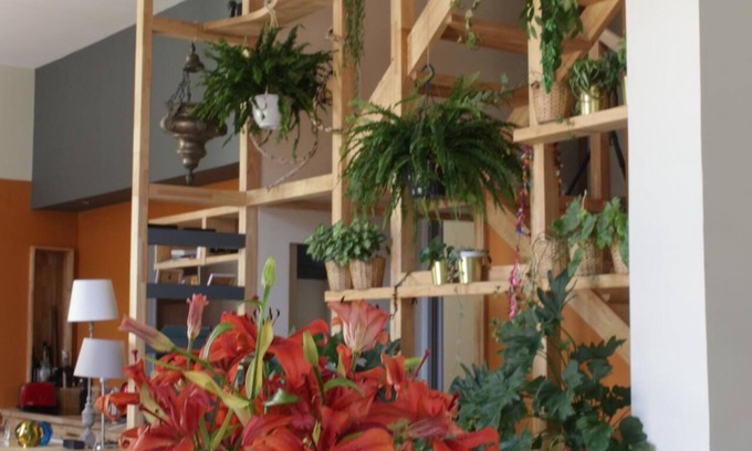It has a living room - dining room - kitchen of 70 m2 bathed in sun, a desk. At each level of this duplex a large room (+ 20m2) with its ensuite bathroom. Downstairs, a large bathtub and an upstairs walk-in shower.