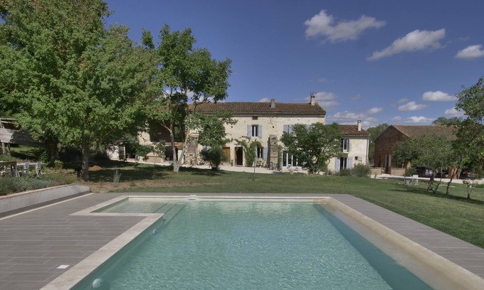 The Lodge is attached to the main house. Outside and adjacent to the property, you can enjoy your own terrace with BBQ, seating and dining area; the views to the Pyrénées are breathtaking and at the end of the day, you can sit back and watch the sunset with a glass of your favourite 'apero'.