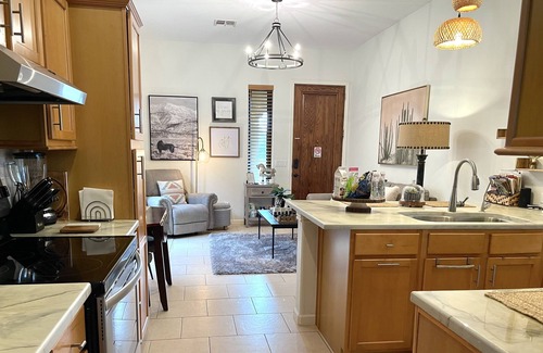 Nestled in the desert of New River, this 1 Queen-bedroom casita offers a delightful escape for your next vacation. As you step inside, you'll be greeted by a cozy and well-appointed space, complete with a fully stocked kitchen, a living room, and all the essentials you need for a comfortable stay.