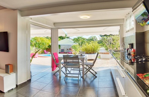 Warmth, comfort and conviviality characterize this gorgeous flat, located at garden level and opening onto a lovely terrace. Its big, enclosed garden and the swimming pool area tempt you to lounge and relax under the bright sun of South Grande-Terre.You will enjoy the West-Indian countryside while being only at three minute's drive to the town centre as well as to most beautiful beaches of Guadeloupe. You will appreciate the warm welcome of the owners of the flat.