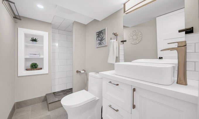 "The Snug" is a 740 square foot studio-style unit, that is bright & modern. You will be on the basement level of the main house, with a completely separate entrance. Amazing kitchen, sleek 3 pc bathroom with rainfall shower head. The queen bed with luxury-firm mattress, has built in storage for all your needs. Dinner table expands for meals, games or working at home!