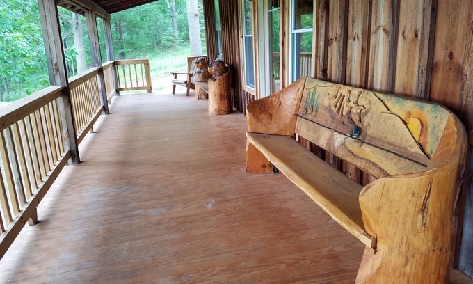 This cabin is perfect for a family to enjoy the true 'cabin-experience.' Bunk beds and full beds make it cozy and enjoyable. The main living room is perfect for family game night and dining nearby. Take the family away to enjoy a weekend away from electronics and enjoy nature! Hikers and bird viewers can enjoy a multitude of viewing wildlife as the cabin is nestled right into the woods. The cabin has an excellent view off the front porch and is newly remodeled. Please plan for a 4-wheel drive vehicle to be prepared for all weather condition. Come and enjoy! Views are breathtaking of the valley. 600 acres with hiking trails to enjoy!
