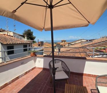 Food & DrinkBottle of water, Tea/Coffee makerBathroomBathtub or shower, Bidet, Toilet paper, Toilet, Shower, Slippers, Hairdryer, TowelsMedia & TechnologyTV, Flat-screen TVGeneralHeating, Air conditioning, FanOutdoorsBalcony, Outdoor furniture, TerraceKitchenWine glasses, Kitchenware, Oven, Stovetop, Microwave, Kitchen, Dining table, Toaster, Refrigerator, Electric kettle, Dishwasher, Washing machineViewView, Landmark viewLiving AreaDining areaBedroomWardrobe or closet, LinensAccessibilityUpper floors accessible by stairs onlyBuilding CharacteristicsPrivate apartment in buildingRoom AmenitiesClothes rack |