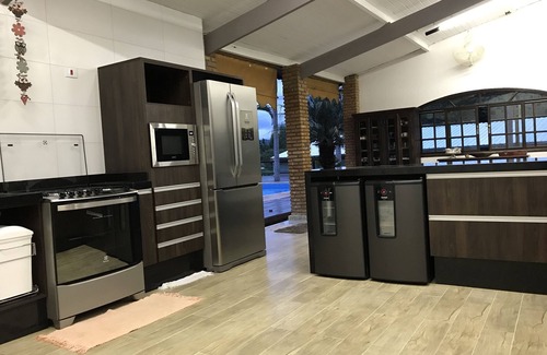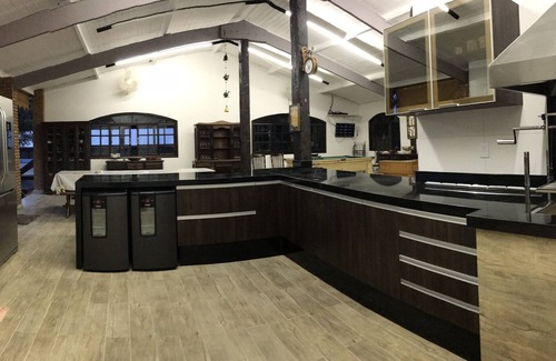 Beautiful house with 14 suites and 3 bedrooms, accommodating up to 40 people comfortably. Space with a lot of green, newly refurbished barbecue area with games table, swimming pool with jacuzzi, sun loungers, lake for sport fishing, hammocks for nature enjoyment and rest, reading area, lake with carp and cascade, kitchen equipped with utensils and appliances . Professional wood oven for pizza!