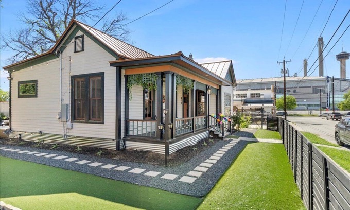 Nestled in the vibrant heart of downtown San Antonio, our 3-bedroom Historic Vacation home offers a delightful escape for your next getaway. Imagine strolling just a short walk to the iconic Alamodome and Convention Center! Explore the bustling Shops at Rivercenter and the renowned River Walk, all within easy 1/2 mile reach. As a traveler, you'll appreciate the thoughtful amenities that make your stay truly comfortable, including free WiFi, a washing machine and dryer, a cozy fireplace, and a smart TV for your entertainment. The fully stocked kitchen, complete with a stove, oven, refrigerator, grill, and all the necessary appliances and utensils, invites you to unleash your culinary creativity. Unwind in the two oversized bathrooms, where you'll find towels, basic soaps, and a hair dryer. Alternatively, take advantage of the iron and ironing board for a crisp, fresh look. Stay cool or warm with the property's air conditioning and heating, and enjoy the outdoor features, such as the porch, fire pit, outdoor play area, and comfortable outdoor furniture. Whether you're seeking a family getaway, a convenient conference location, or a relaxing retreat, our vacation home promises an unforgettable experience in the heart of San Antonio!