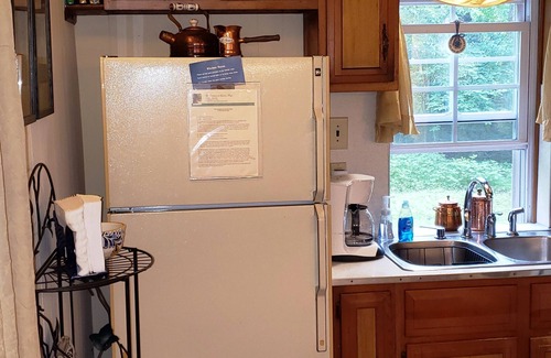 Find rest in this quaint two story CREEKSIDE cottage that comfortably SLEEPS 6, nestled in the woods of south central Pennsylvania. Look up a new recipe in our cookbooks and create delectable meals in the FULLY FURNISHED KITCHEN, browse through local history books, classic stories and children's books in FRENCH COUNTRY DECOR livingroom, build a campfire with FREE FIREWOOD and roast marshmellows over the BACKYARD FIRE RING, enjoy FRESH MOUNTAIN AIR and SPRING while you grill steaks over a PROPANE GRILL. Enjoy one of our many BOARD GAMES in the livingroom or listen to crickets while you sip iced tea from the furnished FRONT PORCH. Then tuck in for the night in one of our 2 BEDROOMS-uniquely and thoughtfully decorated with HALF BATH closeby. No laundry worries as FRESH TOWELS AND LINENS are provided and the cottage contains a LAUNDRY ROOM with washer/dryer, ironing board, iron and other extras.