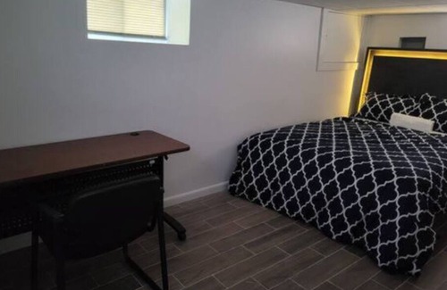 A cozy basement with queen-size beds Free WiFi, and a Smart TV with Roku. | Apartment in Newark